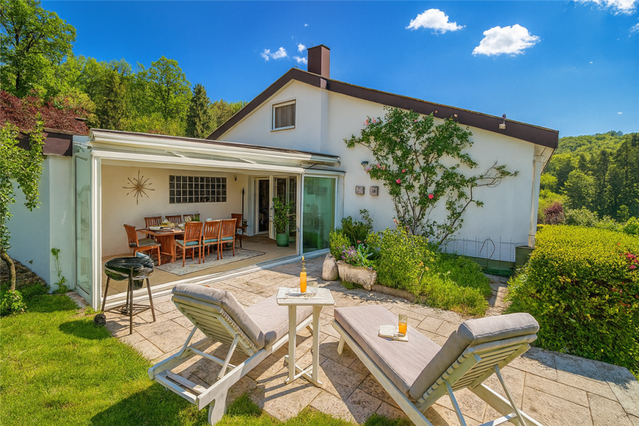 - Der Wintergarten mit Schiebetüren wurde in den 90er Jahren angebaut.
